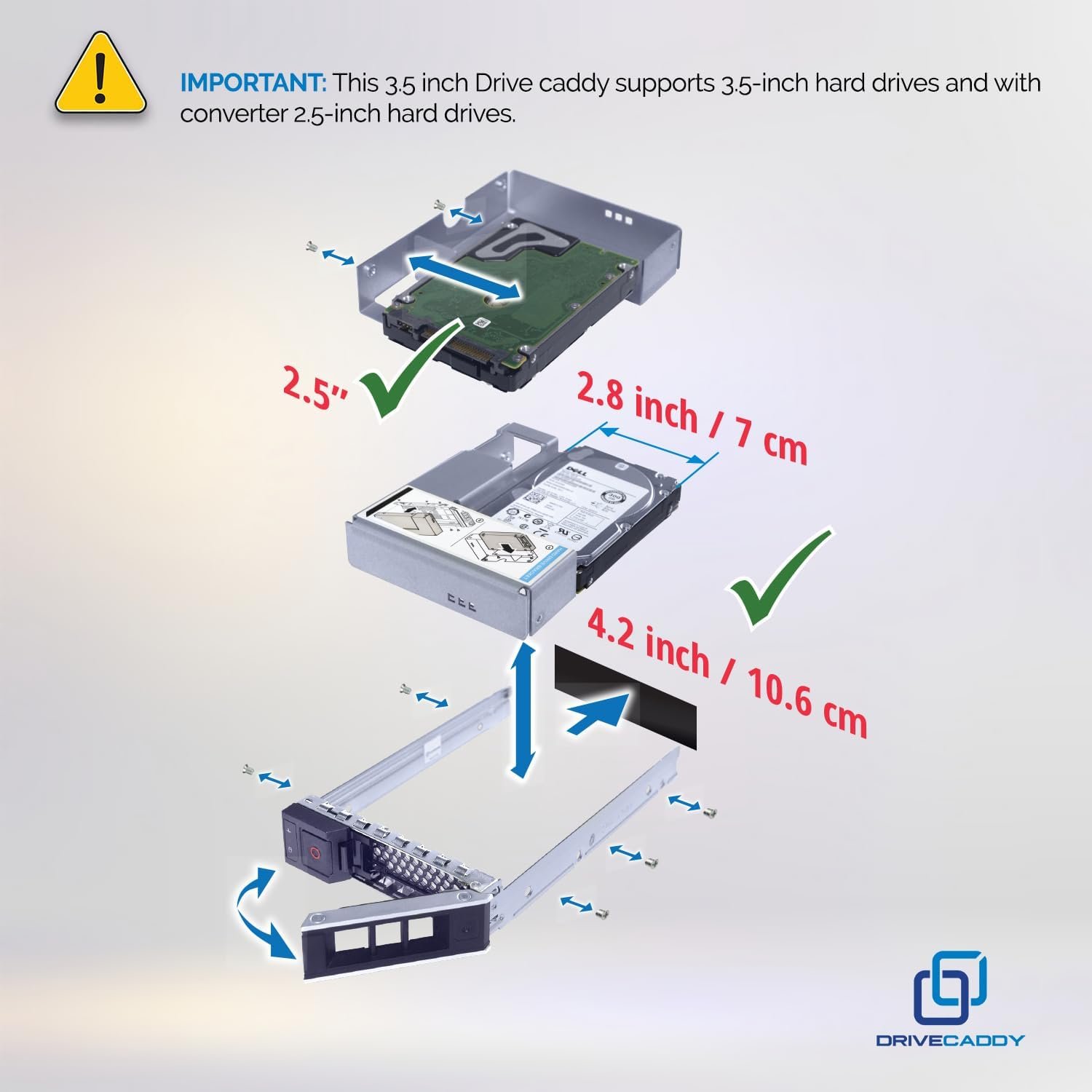 Universal HDD caddy for secure 2.5″ and 3.5″ drive mounting in enterprise server environments