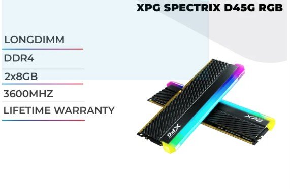 ADATA XPG SPECTRIX D45 DDR4-3600 CL18 16GB (2x8GB) Kit – AX4U36008G18I-DCBKD4, PC4-28800, 288-Pin UDIMM, Black