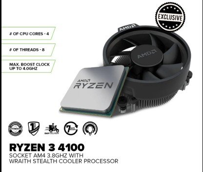 AMD Ryzen 3 4100 – 4-Core, 8-Thread Unlocked Desktop Processor with Wraith Stealth Cooler (3.7 GHz)