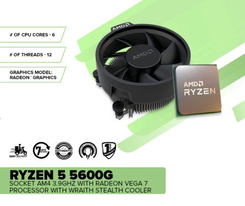 AMD Ryzen 5 5600G – 6-Core, 12-Thread Unlocked Desktop Processor with Wraith Stealth Cooler
