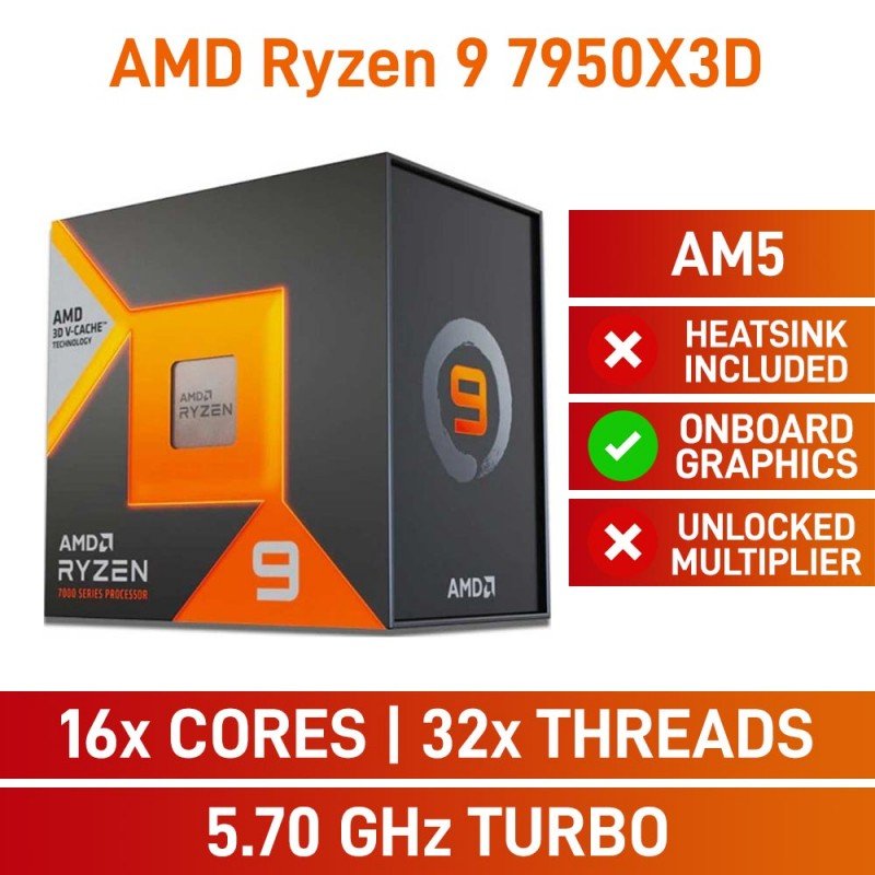 AMD Ryzen 9 7950X3D – 16-Core, 32-Thread Desktop Processor with 3D V-Cache Technology (AM5, 4.2 GHz)