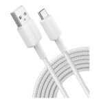 Anker A81H7H21 PowerLine 322 USB-A to USB-C Cable β 10ft braided white cable, supports up to 15W charging and USB 2.0 data sync