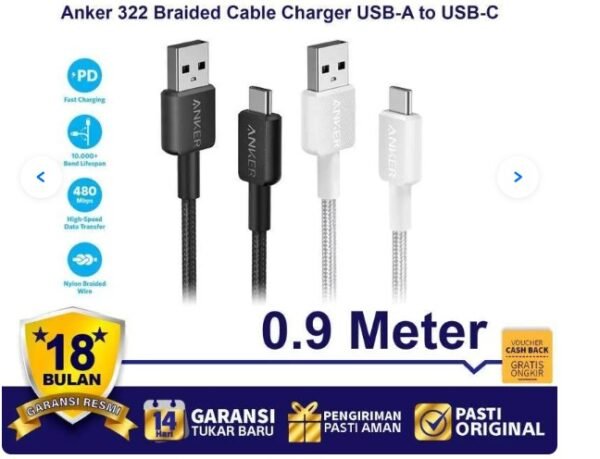 The Anker 322 USB-A to USB-C Cable (Model A81H5H21) delivers dependable charging and data transfer in a compact, durable form. With a braided nylon exterior and reinforced stress points, itβs tested to withstand up to 12,000 bends. USB-IF certified for safety and performance, this 3ft cable supports up to 15W charging and 480Mbps data sync, making it ideal for phones, tablets, and USB-C accessories connected to legacy USB-A ports.