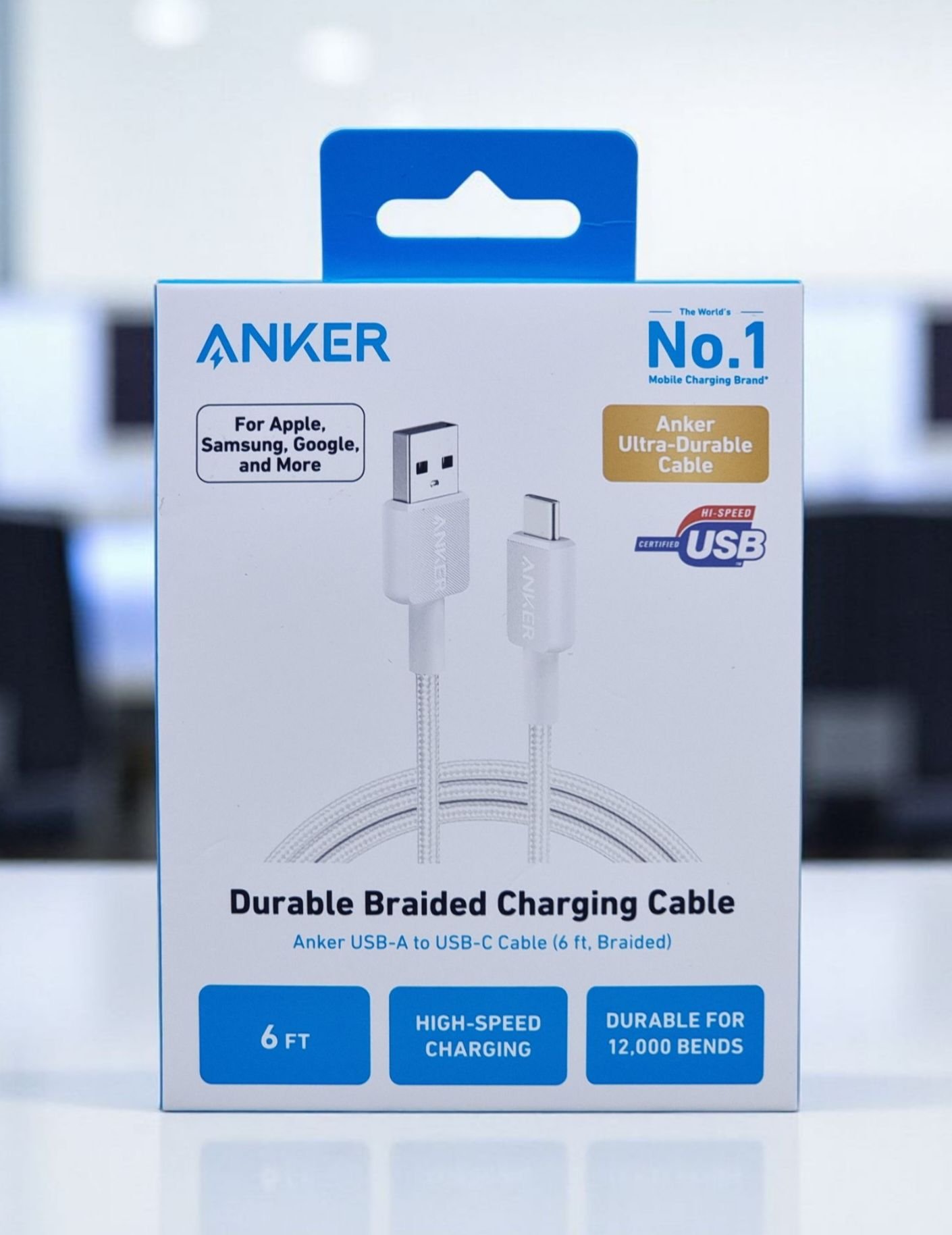The Anker 322 USB-A to USB-C Cable (Model A81H6H21) delivers dependable charging and data transfer with extended reach. Featuring a braided nylon exterior and reinforced stress points, itβs tested to withstand up to 12,000 bends. USB-IF certified for safety and performance, this 6ft cable supports up to 15W charging and 480Mbps data sync, making it ideal for phones, tablets, and USB-C accessories connected to legacy USB-A ports in flexible setups.