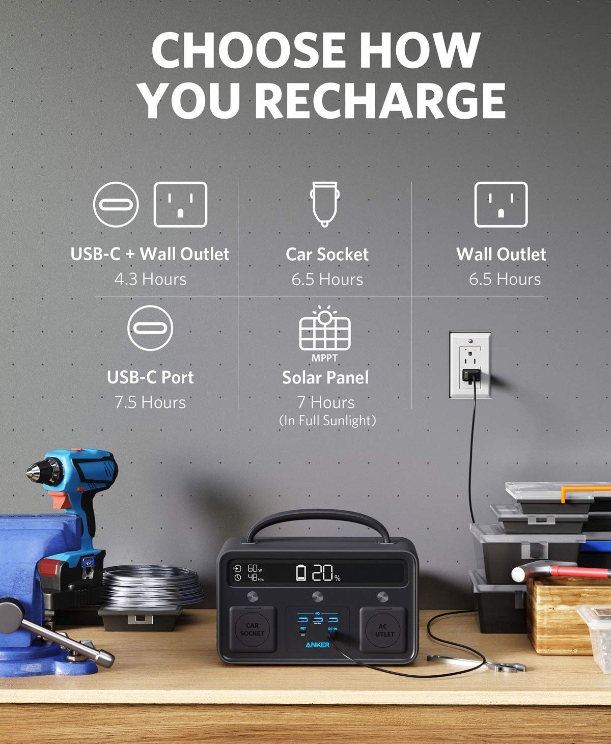 🔌 8 Output Ports – AC, USB-C, USB-A, car socket, and DC