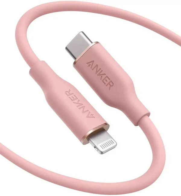 Anker PowerLine III Flow USB-C to Lightning Cable β 3ft / 0.91m, Coral Pink, Model A8662H51, MFi Certified, Silicone Finish