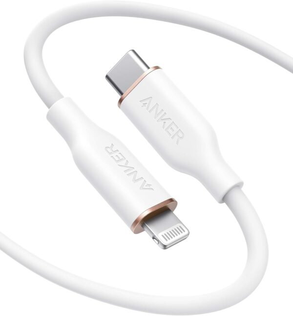 Anker PowerLine III Flow USB-C to Lightning Cable – 6ft / 1.8m, Arctic White, Model A8663H21, MFi Certified, Silicone Finish