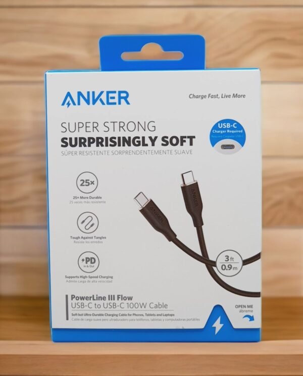 The Anker PowerLine III Flow USB-C to USB-C Cable (Model A8552H11) delivers ultra-soft flexibility and high-performance charging in a compact 3ft form. Made from premium silicone, it resists tangling and feels smooth to the touch. With support for up to 100W Power Delivery and 480Mbps data transfer, itβs ideal for charging laptops, tablets, and phones. The black finish offers a sleek, professional look for any setup.