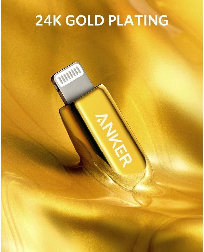 Anker PowerLine+ III USB-C to Lightning Cable – 6ft / 1.8m, 24K Gold Finish, Model A8843HB1, MFi Certified, Supports Power Delivery