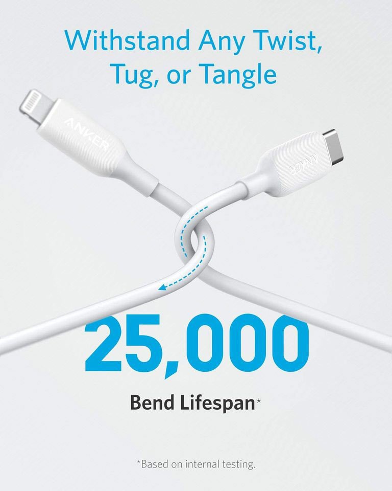 Anker PowerLine III USB-C to Lightning 2.0 Cable β 6ft / 1.8m, White, Model A8833H21, MFi Certified, Supports Power Delivery