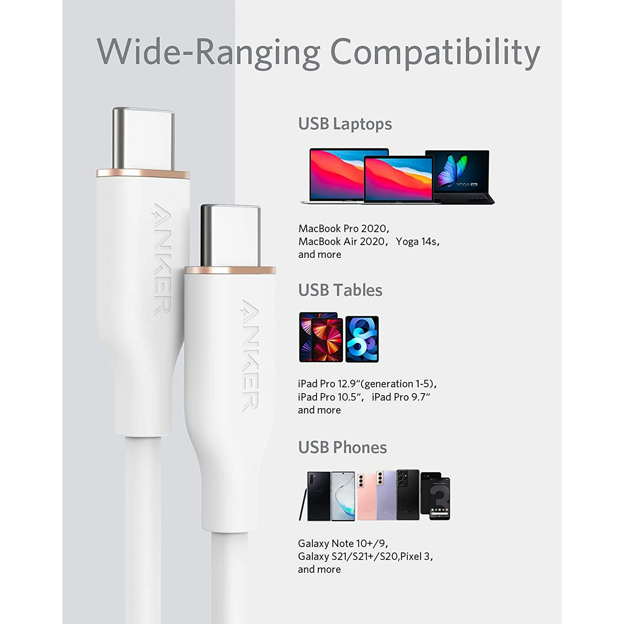 Anker PowerLine III USB-C to USB-C 2.0 Cable – 6ft / 1.8m, White, Model A8856H21, Supports 100W Power Delivery, Ultra-Durable Build