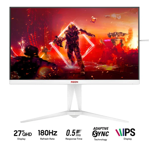 AOC PHIāAG275QXW 27″ AGON V Fast IPS QHD 2K LED Gaming Monitor ā 180Hz, HDMI 2.0, DP 1.4, Height Adjustable Stand, VESA Mount Compatible, White Finish