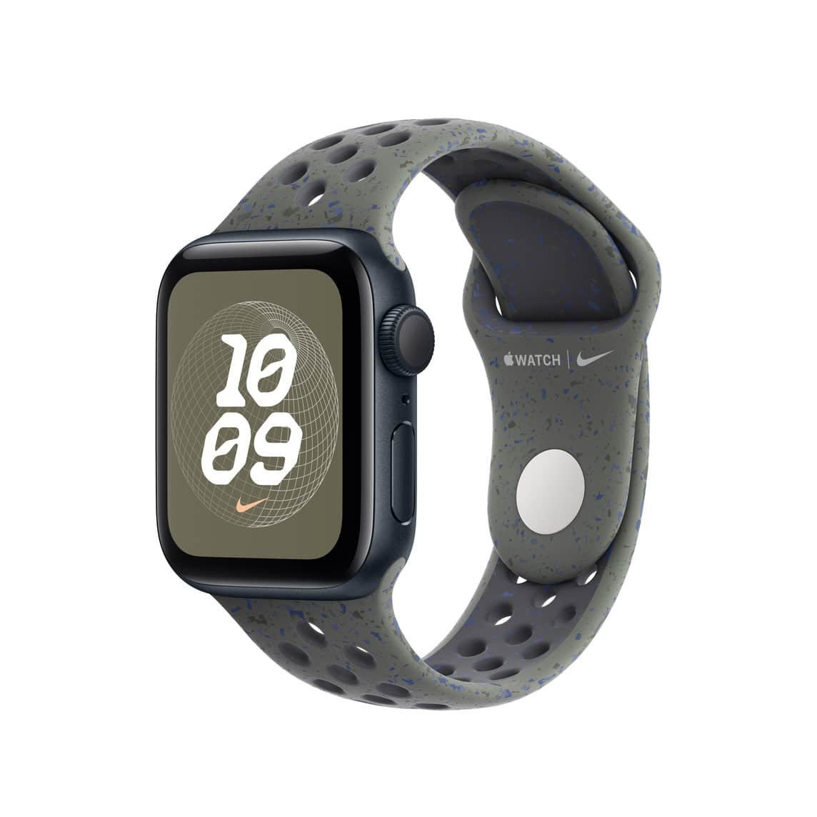 Crafted from a custom high-performance fluoroelastomer, the Nike Sport Band is both durable and soft, ensuring comfort during workouts or daily wear. Its compression-molded perforations enhance breathability, while the pin-and-tuck closure ensures a secure fit. The band features colorful flakes, creating a unique, randomized pattern on each band, and is made with at least 30% recycled fluoroelastomer, aligning with eco-friendly practices.