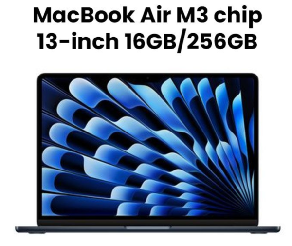 Apple MC8K4ZP/A 13-inch MacBook Air: Apple M3 chip with 8-core CPU and 8-core GPU, 16GB, 256GB SSD – Midnight