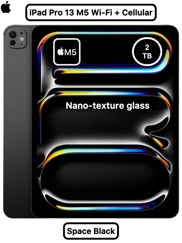 The 13‑inch iPad Pro combines the Apple M4 chip with a Liquid Retina display enhanced by Nano‑Texture Glass, reducing glare for improved visibility in bright environments. With massive 2TB storage, Wi‑Fi 6E and 5G Cellular connectivity, and a sleek Space Black finish, it’s designed for professionals, creators, and advanced users who demand speed, expansive visuals, and reliability in a portable powerhouse.