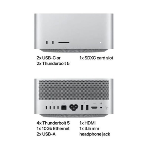 | Ports | 4Γ Thunderbolt 4 (USBβC), 2Γ USBβA, HDMI, 10Gb Ethernet, SDXC card slot, 3.5mm headphone jack |