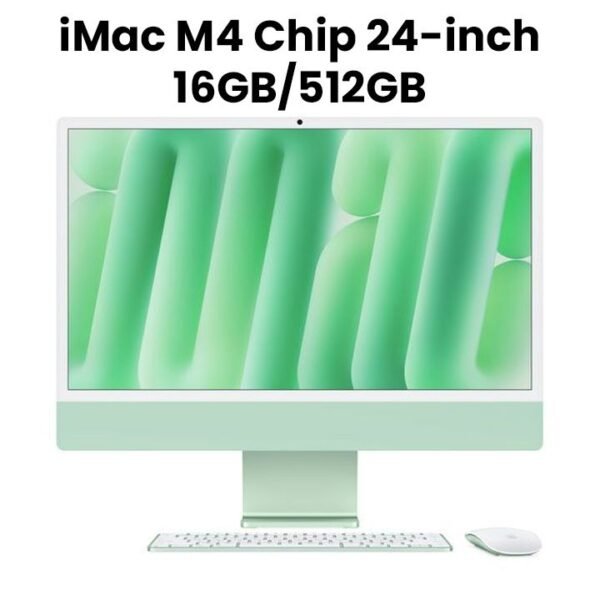 The Apple iMac 24‑inch (M4, 2025) in Green combines sleek design with powerful Apple silicon. Featuring the M4 chip, 16 GB of unified memory, and a 512 GB SSD, it delivers smooth multitasking, fast storage, and stunning visuals. With its 4.5K Retina display and bold Green finish, this iMac is ideal for professionals, students, and families who want both performance and personality in their desktop computer.