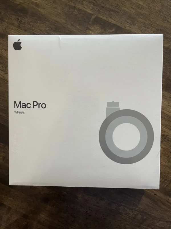 The Apple Mac Pro Wheels Kit adds mobility to your Mac Pro (2019), allowing you to easily move your workstation across studio or office spaces. Crafted from stainless steel and rubber, the kit replaces the standard feet with four precision wheels, combining durability with smooth rolling performance. It is ideal for professionals who need flexibility in positioning their Mac Pro without compromising stability.