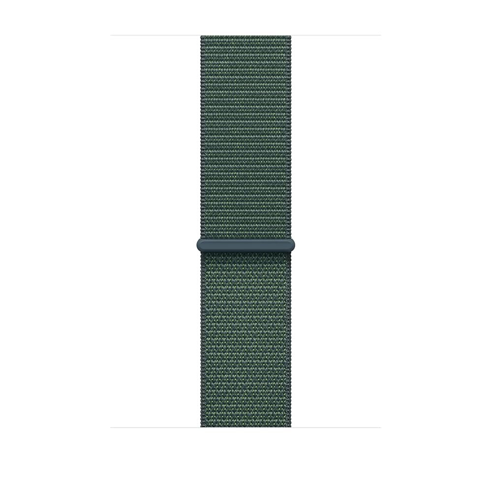 The Apple 46mm Lake Green Sport Loop is crafted from a double-layer nylon weave, featuring dense loops on the skin side for soft cushioning and moisture escape. It incorporates 82% recycled yarns, including materials from discarded fishing nets, making it an eco-friendly choice. The hook-and-loop fastener allows for quick and easy adjustment, ensuring a secure and comfortable fit. This band is carbon neutral, containing 45% recycled content by weight, with 100% of manufacturing electricity covered by clean energy.