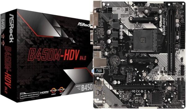ASRock B450M-HDV R4.0 Micro ATX Motherboard โ AMD AM4 Socket, DDR4, Ultra M.2 (Model: ASR-90-MXB9N0-A0UAYZ)