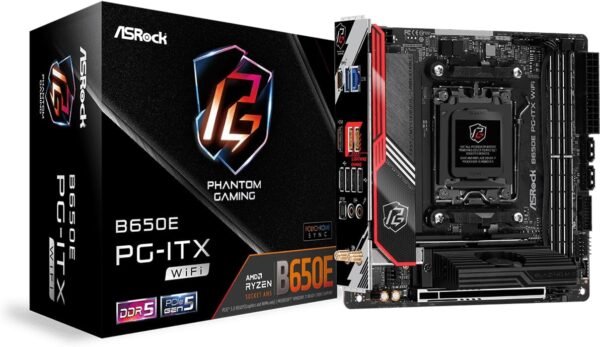 ASRock B650E PG-ITX WiFi – Model 90-MXBJE0-A0UAYZ, Mini-ITX Motherboard with AMD B650E Chipset, DDR5, PCIe 5.0, Gen5 M.2, Killer Wi-Fi 6E, and USB 3.2 Gen2x2