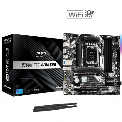 ASRock B760M Pro-A D4 WiFi Micro ATX Motherboard – Intel® LGA1700 Socket, DDR4, PCIe 4.0, Gen4 M.2, Wi-Fi, USB 3.2 Gen1 (Model: ASR-90-MXBNG0-A0UAYZ)