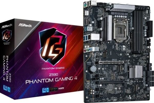 ASRock Z590 Phantom Gaming 4 ATX Motherboard โ Intelยฎ LGA1200 Socket, DDR4, PCIe 4.0, USB 3.2 Gen2x2, Polychrome RGB (Model: ASR-90-MXBF00-A0UAYZ)