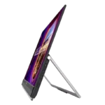 - Multiple stand options and accessories, including an integrated carrying handle/kickstand, height-adjustable C-clamp with Z-axis adjustment, and partition hook kit for flexible placement