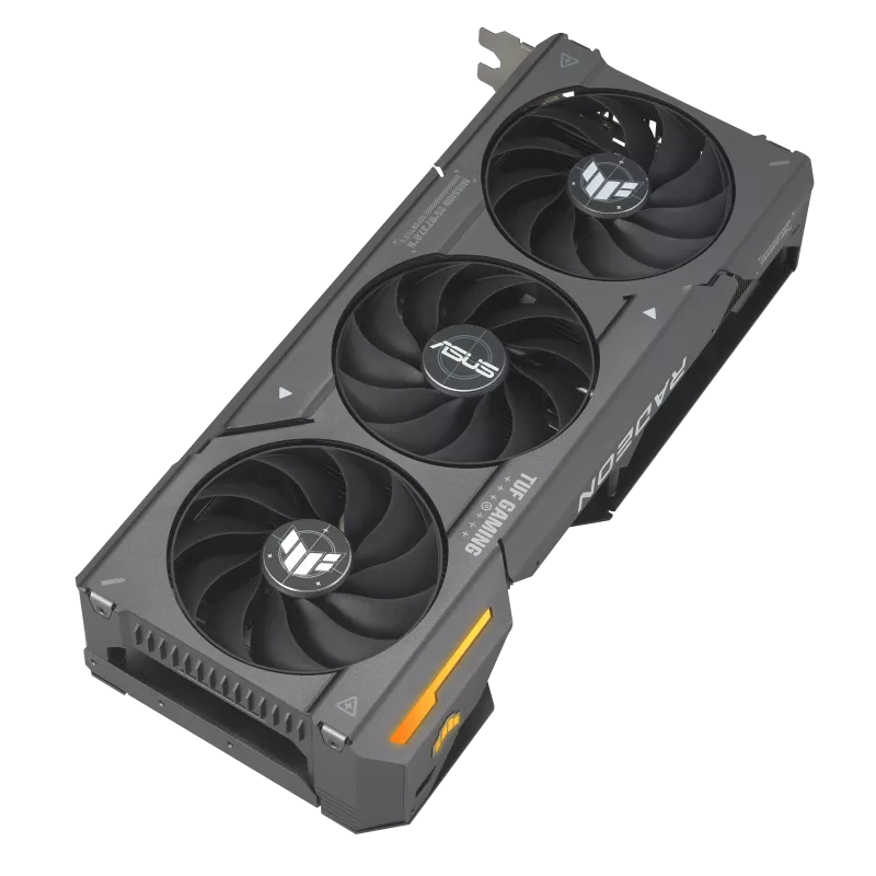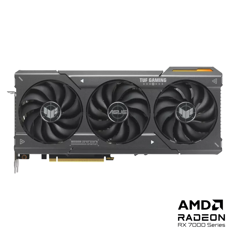 ASUS TUF Gaming Radeon? RX 7600 XT OC Edition 16GB GDDR6 optimized inside and out for lower temps and durability.