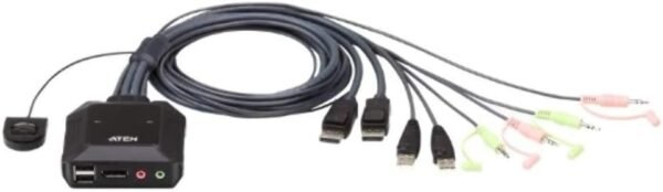 ATEN CS22DP 2-Port USB DisplayPort Cable KVM Switch – 4K UHD Support, Micro USB Power, Integrated Cabling