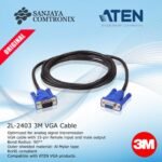 The Aten 2L-2403 is a 3-meter VGA cable designed for high-resolution applications up to 1920 x 1200. It features a 15-pin male connector on one end and a 15-pin female connector on the other, facilitating the connection between VGA-enabled devices. The cable is constructed with tinned copper conductors and shielded with AL-Mylar tape to minimize interference and ensure reliable signal transmission. The outer jacket is made of PVC, providing durability and flexibility. The cable is RoHS compliant, ensuring it meets environmental standards.