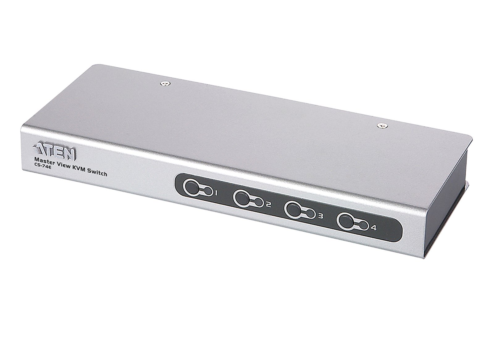 ATEN CS74E 4-Port PS/2 KVM Switch – Slim Metal Housing, Pushbutton Control, Includes 2 x 1.2m + 2 x 1.8m PS/2 KVM Cables