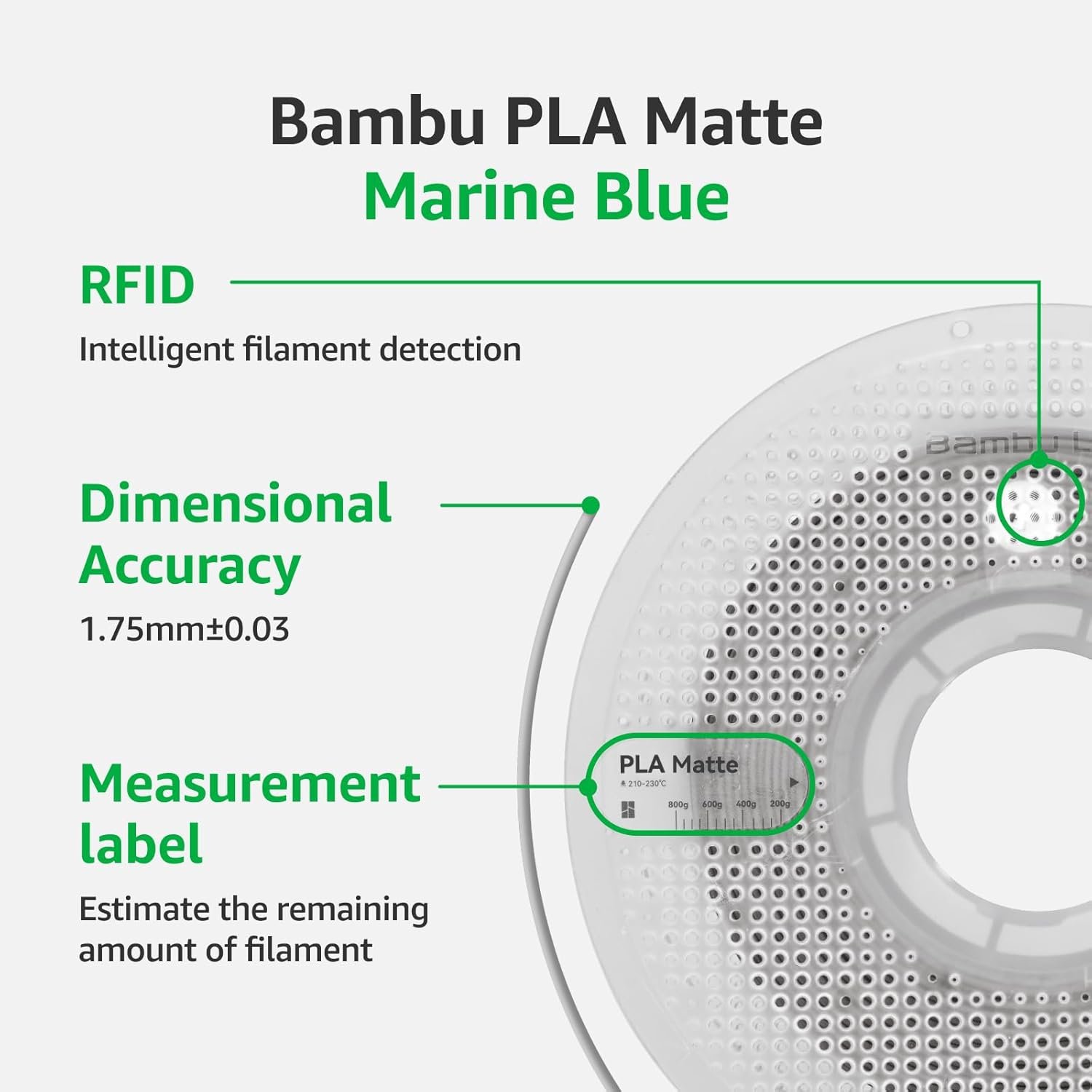 Bambu Lab A01-B3-1.75-1000-SPL PLA Matte Filament – Marine Blue – 1kg – 1.75mm Diameter – with Bambu Reusable Spool