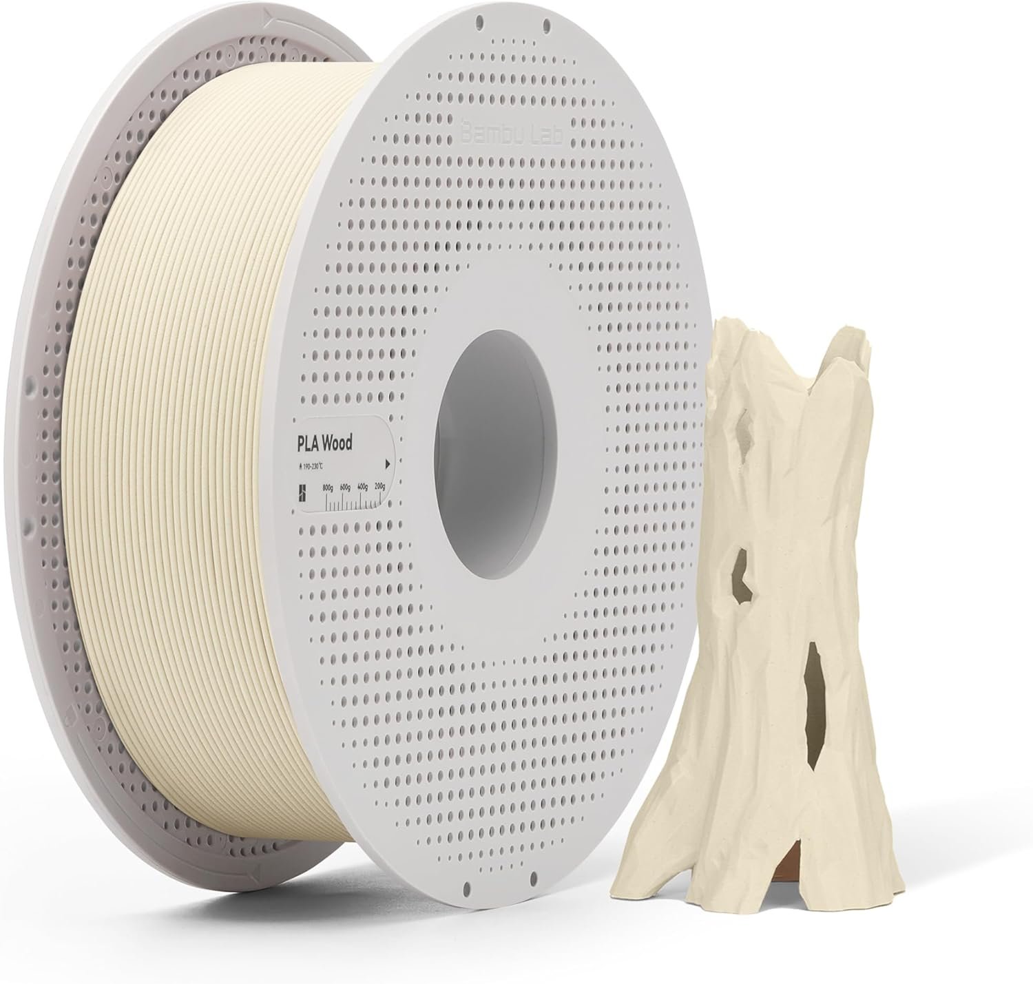 Bambu Lab PLA Wood White Oak filament blends PLA with natural wood fibers to deliver prints that look and feel like real wood. With a smooth extrusion profile and excellent layer adhesion, it’s perfect for decorative models, artistic projects, and functional prototypes requiring a natural aesthetic. Fully compatible with Bambu Lab AMS and reusable spool systems, it combines eco‑friendly design with reliable performance.