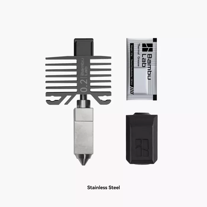 The Bambu Lab FAH004-N-1 Hotend with a 0.2 mm stainless steel nozzle is designed for high-resolution 3D printing. Perfect for intricate models and fine details, it delivers consistent extrusion and minimizes clogging. Compatible with Bambu Lab P1P, P1S, and X1C printers, this hotend ensures professional-grade results for precision-focused creators.