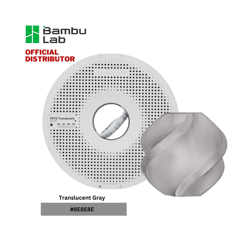 Bambu Lab PETG Translucent Gray filament offers toughness, impact resistance, and a semi‑transparent finish. Designed for functional and decorative prints, it provides excellent layer adhesion and reduced shrinkage. Fully compatible with Bambu Lab AMS and reusable spool systems, it is ideal for strong, translucent parts that balance durability with visual appeal.