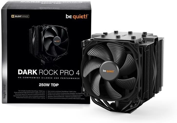 BE QUIET! BK022 Dark Rock Pro 4 CPU Cooler – Dual-tower 250W TDP air cooler with Silent Wings PWM fans, 7 copper heat pipes, and support for Intel LGA1700 and AMD AM5 sockets