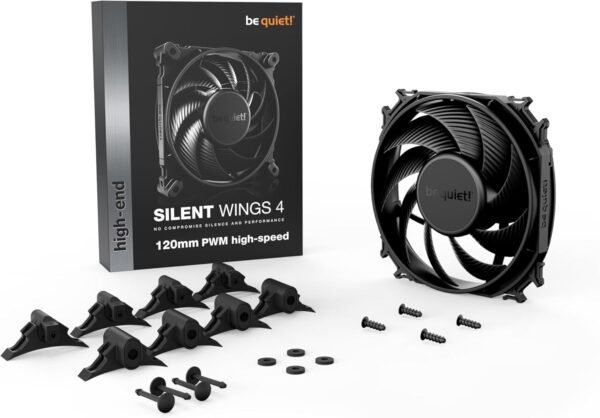 Be Quiet! Silent Wings 4 BL094 120mm PWM High-Speed Cooling Fan – 2500rpm, Fluid-Dynamic Bearing, Funnel-Shaped Frame, Anti-Vibration Mounting