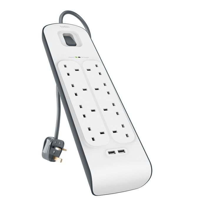 The Belkin BSV804SA2M Surge Protection Strip offers comprehensive protection for your electronic devices against power surges and voltage fluctuations. With eight surge-protected AC outlets and two high-speed USB ports, it ensures that all your devices, from home theater systems to smartphones, are safeguarded and powered efficiently. Its durable design and 2-meter heavy-duty power cord make it a reliable choice for both home and office setups.