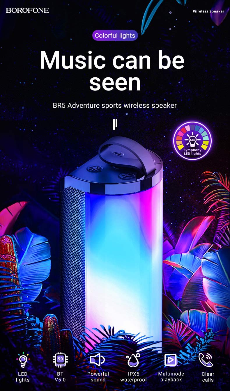 The Borofone BR5 Adventure is a compact wireless speaker built for portability and versatility. With dual 5W drivers, Bluetooth 5.0 connectivity, and support for FM radio, TF card, USB, and AUX playback, it’s designed for outdoor use, travel, and casual listening. Its rugged form factor and quick charge time make it ideal for spontaneous adventures and everyday carry.