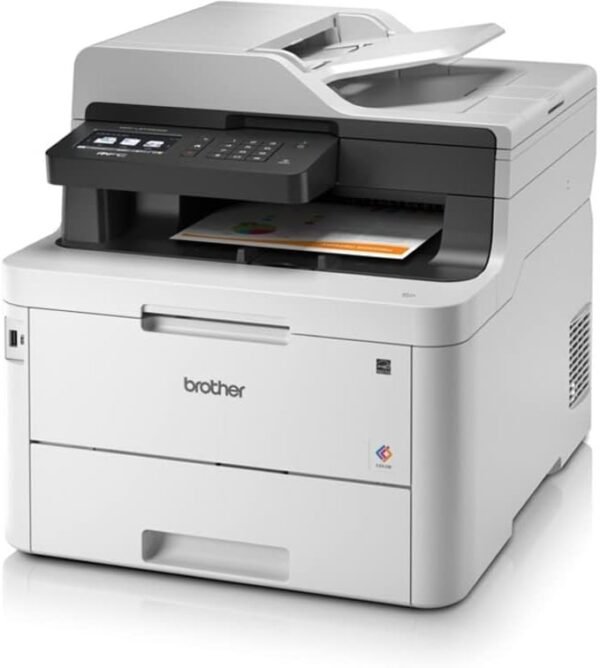 The Brother MFC-L3770CDW is a high-performance 4-in-1 color laser printer built for demanding office environments. It offers vibrant color printing, scanning, copying, and faxing with support for automatic 2-sided printing and single-pass duplex scanning. With print speeds up to 25 ppm, a 50-sheet ADF, and dual paper input trays, it handles a variety of media types with ease. The 3.7″ color touchscreen and wireless connectivity make it ideal for teams that need secure, flexible, and professional-grade output.