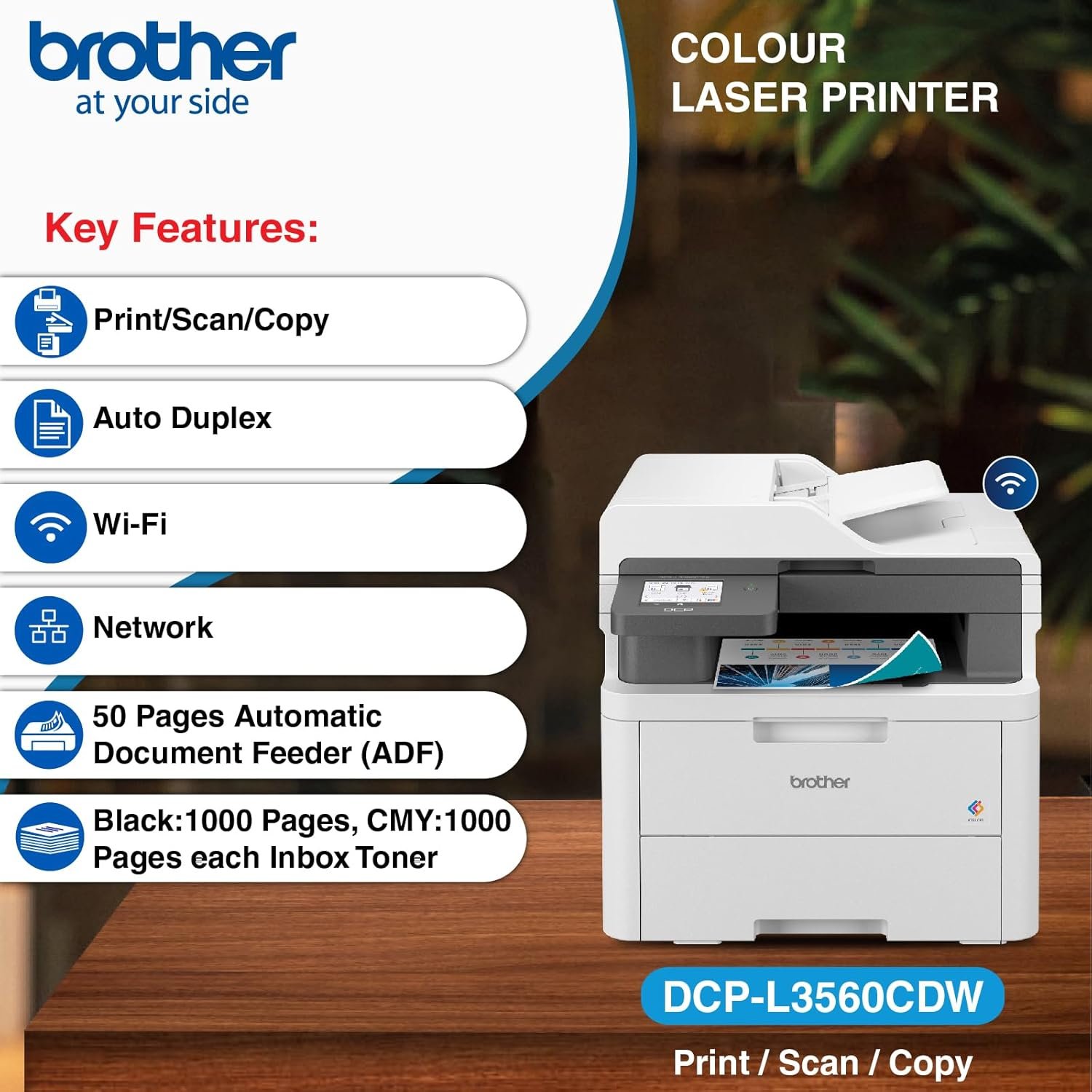 Print in colour with confidence β the Brother DCP-L3560CDW delivers wireless performance and professional results.