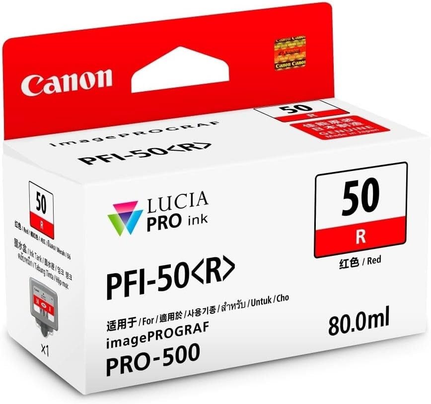 Canon 0542C001AA Canon PFI‑50 R Red Ink Cartridge – 80 ml Capacity, Compatible with Canon imagePROGRAF PRO‑500 Printer