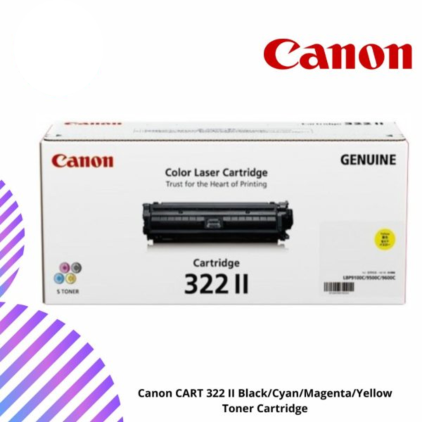 Canon 2647B001AA Cart 322 II Yellow Toner Cartridge – Genuine Canon supply for LBP9100Cdn / LBP9500C / LBP9600C