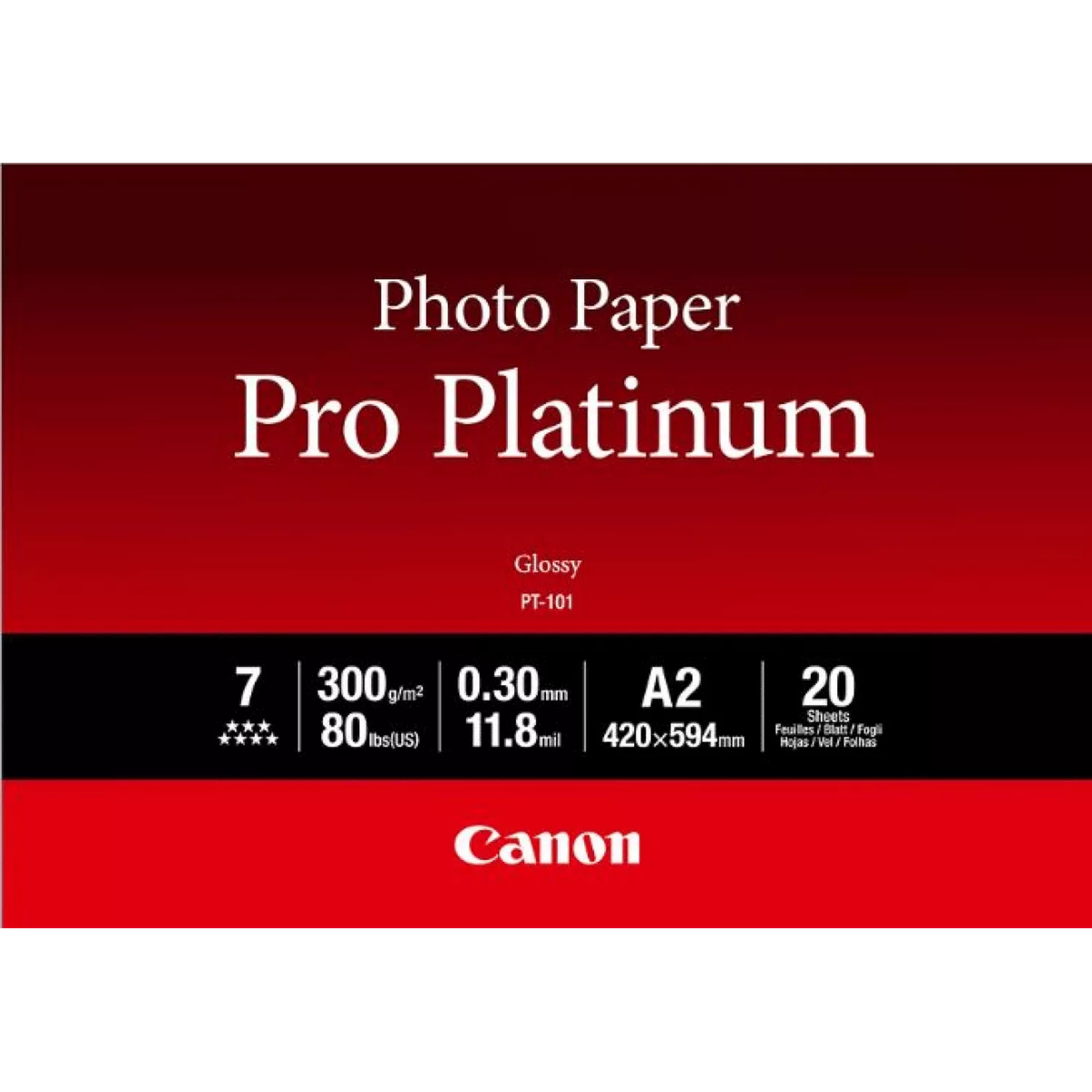 Canon PT‑101 Pro Platinum Photo Paper is the flagship glossy paper for professional photo printing. With exceptional color reproduction, deep blacks, and a luxurious glossy finish, this heavyweight paper is designed for photographers and artists who demand premium quality in large-format A2 prints.