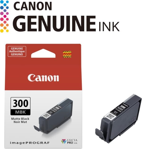 Achieve deep tonal reproduction with Canon’s trusted PFI‑300 Matte Black Ink Cartridge today.