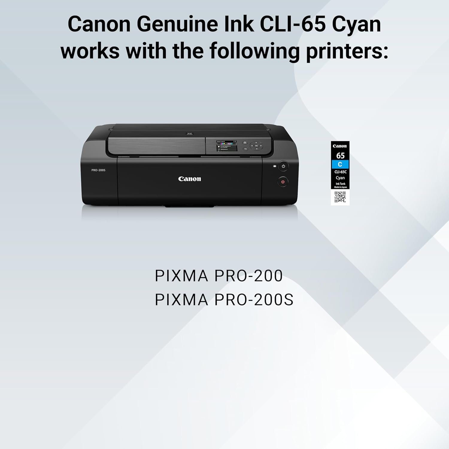 Canon 4216C003AA Canon CLI‑65 C Cyan Ink Cartridge – 12.6 ml Capacity, Compatible with Canon PIXMA PRO‑200 Printer