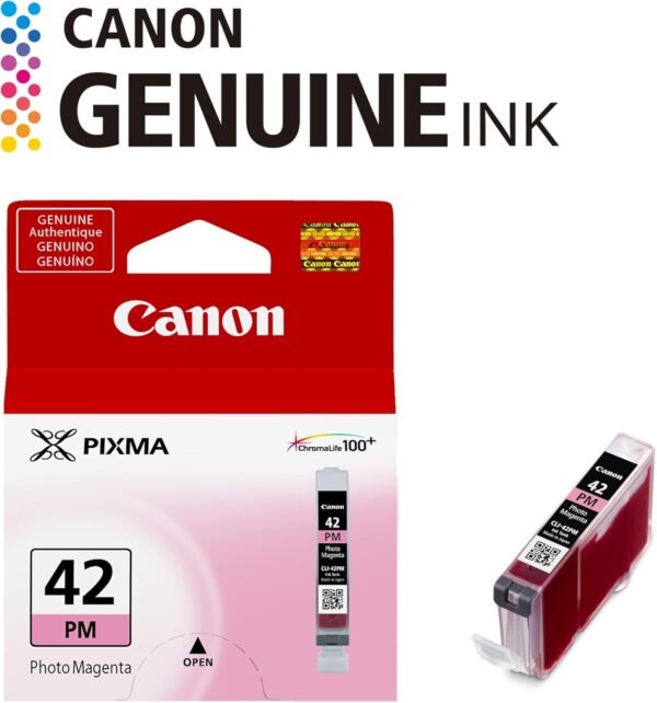 The Canon CLI‑42 PM Photo Magenta Ink Cartridge expands the color range for professional photo printing. Engineered for the Canon PIXMA PRO‑100, it delivers smooth tonal transitions, accurate color reproduction, and long‑lasting results for fine art and photography projects.