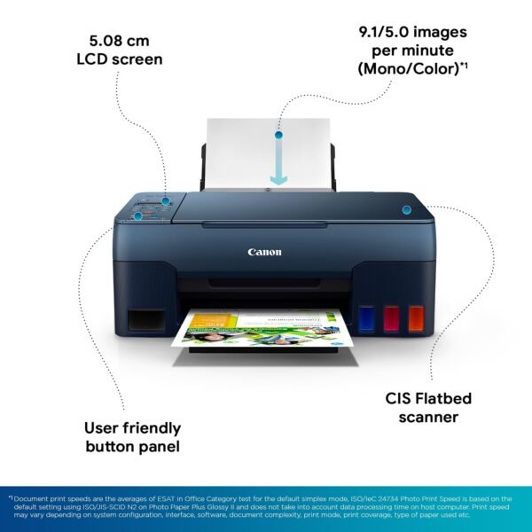 The Canon PIXMA G3020 is a wireless all-in-one ink tank printer designed for high-volume printing with low running costs. Featuring refillable ink tanks, mobile printing support, and multifunction capabilities, it’s ideal for home offices, students, and small businesses seeking reliable color output and efficient operation.