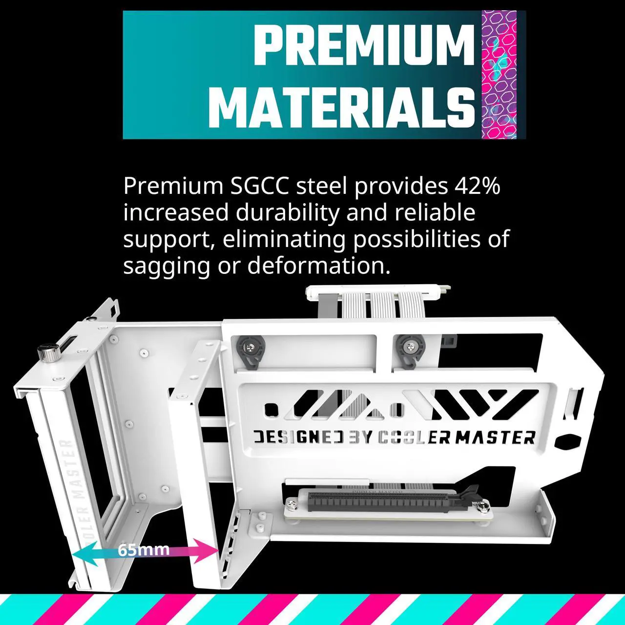 Cooler Master Vertical GPU Holder PCIe 4.0 Riser V3 – White (MCA-U00R-WFVK03) – Includes Gen 4.0 riser cable, reinforced steel bracket, and modular mounting for ATX cases